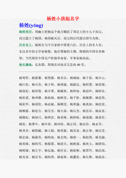 杨氏起名是中国传统文化中的一种重要方式。根据杨式起名学的理论,名字中蕴含着一个人的命运、性格和未来走向。在2018年,以下是一些合适的杨氏起名建议供参考: