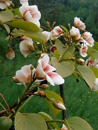 桐花树高大挺拔,枝叶繁茂,白色的花朵密密匝匝地挂满枝头,如同银色的云霞萦绕于山间。走在灵峰的山间小道上,能闻到淡淡的花香,仿佛置身于一片祥和清幽之中。
