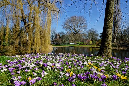 "在春天,花园里的花儿竞相开放,色彩斑斓,吸引了许多蜜蜂和蝴蝶。孩子们在草地上奔跑,欢笑声此起彼伏。阳光明媚,微风不燥,正是户外活动的好时节。"